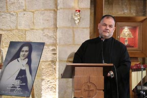 المُتّحد معنا في هذا الوقت ونحن مُتّحدين معه في حاضرة الفاتيكان، عشيّة تقديس الشهداء المسابكيين الثلاثة. أعلم "ريّس" ايلي صفير، رئيس هذه البلدية، كم أنّ ريفون العزيزة في قلبك، وكم أنّه كان هناك شعلة إشعاع، وهذا ما طلبه غبطة البطريرك من أبونا توفيق، أن يكون هذا المركز، مركز إشعاع لتظهير أمومة الكنيسة وأبوّتها. واليوم، أبونا جورج يَرَق، رئيس هذا الدير، دير مار سركيس وباخوس، وهذا المركز، والمشرف العام على مكتب راعويّة الشبيبة Bkerkejeune، يتابعون هذه المسيرة، ونحن نفتخر كثيرًا ومطمئنّين كثيرًا أنّ هذه المسيرة مستمرة. وفكرة الموت، المصالحة مع الموت التي قلتها أستاذ نعمة، مع أبونا توفيق الذي منذ 3 سنوات كأنّه بالأمس، مرّت وكأنّ ما حدث قد حدث بالأمس،