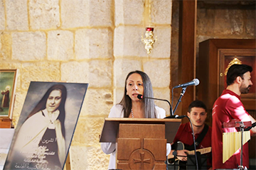 وقد استشهدْتُ بالقديسة تريز بهذه العلامة، فقد علّمنا "توفيق" أن نقرأ العلامات. والعلامة كانت التاريخ، 19 تشرين الأول 2021، تاريخ بداية رسالته مع تريز عام 1997. هناك ثلاث علامة، كل مسيرة "توفيق" هي أن نقرأ العلامات، ونحن في بعض الأوقات نُهمل ذلك سهوًا ولا ننتبه. ولكن هناك ثلاث علامات قويّة جدًا، تجعلنا نتنبّه إلى ما يحدث، وهو أنّنا لست لوحدنا. بدايةً نحن أخذنا عنوانًا لهذا اللقاء وهو "إيماني ساطع". لبنان. لقد شهد لبنان من آب إلى الآن ثلاث علامات قويّة جدًا: أول علامة، تطويب البطريرك الدويهي في بكركي. والعلامة الثانية، حفل استقبال جثمان المكرّم الكاردينال أغاجانيان في وسط بيروت. والعلامة الثالثة، تقديس الشهداء المسابكيين الثلاثة في حاضرة الفاتيكان غدًا. وبما أنّ تاريخ ذكرى "توفيق" الثالثة يصادف في 19 تشرين الأول، تسألنا مع أبونا جورج عن موعد هذا التاريخ، فاطلعنا على الروزنامة بسرعة ووجدنا أنّه يُصادف يوم سبت، وذلك كي نتمكّن من القيامة بهذا الاحتفالية بأكثر قدر ممكن من الاستقطاب. والأب ميشال عبود يعلم جيدًا جدًا أنّ هذه المرافقة بالعلامات مع "توفيق" خلال كل هذه المسيرة معًا غالبًا ما لا وجود للصدفة فيها. وتأتي هذه العلامات لتجعلنا نتشدَّد. كان هناك دائمًا شعار ليسوع فرح الذين أُحييهم من قلبي كثيرًا من خلال جوقتهم اليوم.