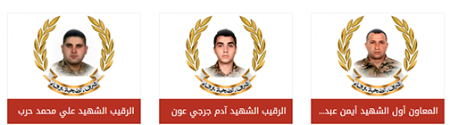 نعت قيادة الجيش اللبناني - مديرية التوجيه، المعاون أول الشهيد أيمن عبد اللطيف رحال والرقيب الشهيد آدم جرجي عون والرقيب الشهيد علي محمد حرب، الذين استشهدوا بتاريخ ١٩ /١١ /٢٠٢٤ جراء استهداف العدو الإسرائيلي مركزًا للجيش اللبناني في بلدة الصرفند، وفي ما يلي نبذة عن حياة كل منهم: