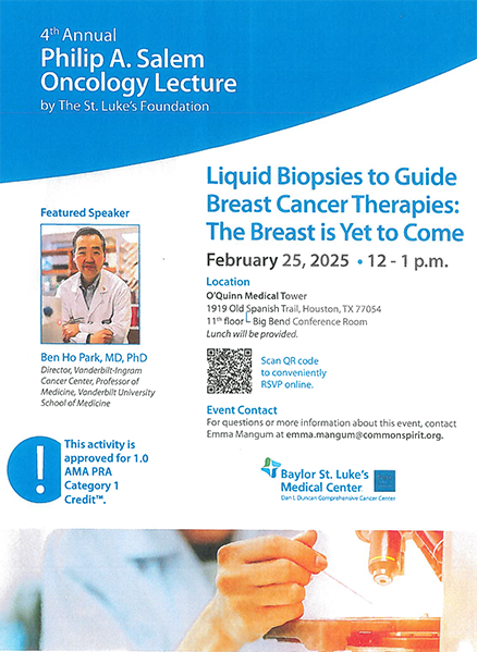 كلية الطب في جامعة بايلور الاميركية كرّمت حديثا الدكتور فيليب سالم لما قدمه من إنجازات في علم الأمراض السرطانية والأبحاث فيها، بتأسيس كرسي اكاديمي ومحاضرة سنوية تحملان اسمه . وكلية الطب هذه كان يرأسها الدكتور مايكل دبغي وهي تعتبر من أهم كليات الطب في الولايات المتحدة. وكان المحاضر لهذه السنة رئيس مركز السرطان في جامعة فاندربيلت الدكتور بن هو بارك الذي ألقى محاضرة يوم الثلاثاء في 25 شباط عن فحص مخبري جديد لتشخيص السرطان الا وهو الخزعة السائلة (Liquid Biopsy).
