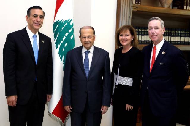 موقف الرئيس عون جاء خلال استقباله قبل ظهر اليوم وفدا من النواب الاميركيين ضم النائبين داريل عيسى Darell Issa وستيفان لينش Stephen Lynch وعدداً من معاونيهما، في حضور السفيرة الاميركية في بيروت السيدة اليزابيث ريتشارد، نقل اليه التهاني لمناسبة اجراء الانتخابات النيابية بنجاح، وللجهود التي يبذلها الرئيس عون في حماية لبنان والدفاع عن سيادته واستقراره.