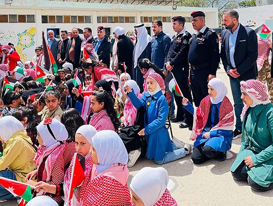 احتفلت مدرسة أسماء بنت أبي بكر الأساسية بيوم العلم الأردني عبر حفل مدرسي مهيب، أقيم تحت رعاية عطوفة متصرف لواء المزار الجنوبي، الدكتور "علي الحيصة"، وبحضور رئيس مركز أمن المزار الجنوبي، الرائد "محمد بيك المومني"، ومديرة الشؤون الإدارية والمالية، الدكتورة "اعتماد الجعافرة". كما حضر الحفل رئيس بلدية مؤاب الجديدة، المهندس "أحمد امهيدي الطراونة"، وممثلون عن الشرطة المجتمعية لشرطة المزار الجنوبي، ومركز دفاع مدني المزار الجنوبي، ومركز صحي ذات راس، إلى جانب رئيس مجلس التطوير التربوي، داوود الجعافرة، وأعضاء المجلس المحترمين، إضافة إلى عدد من الشخصيات العامة ورؤساء الجمعيات.