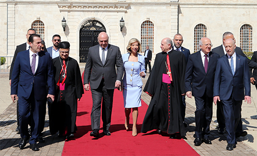 وكان رئيس الجمهورية جوزاف عون وعقيلته اللبنانية الاولى نعمت عون وصل الى الصرح البطريركي في بكركي عند التاسعة والثلث صباحا، بموكبه الرئاسي وسط إجراءات أمنية جدا مشددة، رافقته طائرة هليكوبتر من الجو طول طريقه الى بكركي