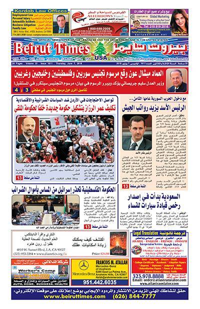 bah Beirut Times 1611 - June 7, 2018 - بيروت تايمز جريدة يومية لبنانية وعربية تصدر في اميركا Beirut Times Daily Lebanese newspaper