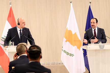 وتابع: "تحدثنا أيضا عن العلاقات بين الاتحاد الأوروبي ولبنان، واستطيع القول بكل تأكيد ان قبرص قولا وفعلا لاعب متحمس لتوطيدها. وعلاقاتنا حتما تتأثر بالتحديات المشتركة التي علينا ان نواجهها في منطقتنا، حيث تختار قبرص بكل إدراك الوقوف الى جانب لبنان، لأنه جزء لا يتجزأ من منطقة شرق البحر المتوسط، كما وأن رخاء لبنان وإستقراره هما ذات أهمية إستراتيجية بالنسبة اليها. وهذه هي الرسالة التي نرسلها الى بروكسل. وطبعا إٍستقرار لبنان ليس لمصلحة قبرص فقط لكن أيضا لمصلحة الإتحاد الأوروبي."