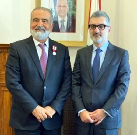 السفير فادي زيادة والسيد جميل شعيب أثناء تقليده وسام الاستحقاق الفضي