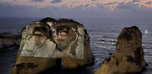 بيروت - في تحد لقرار الحكومة اللبنانية، أنار حزب الله صخرة الروشة ..