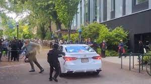 رجل يقتحم بسيارته حشدا من المحتجين المؤيدين لفلسطي ..