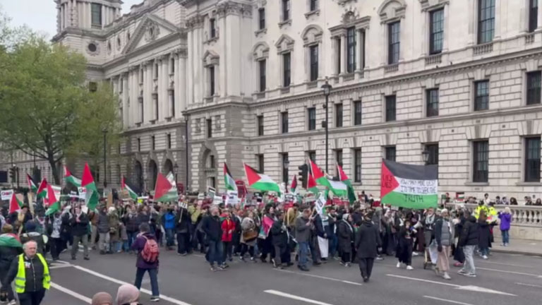 وكالات الأنباء - انطلقت اليوم السبت مسيرة ضخمة تضامنا مع الفلسطينيين ف ..